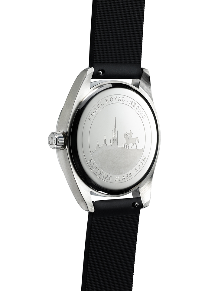The Nobel Royal Black Harva is a modern and sporty watch. It comes together with a black rubber band, a sporty alternative to leather bands. The all black look is not only considered classy and sophisticated but is also incredibly comfortable.